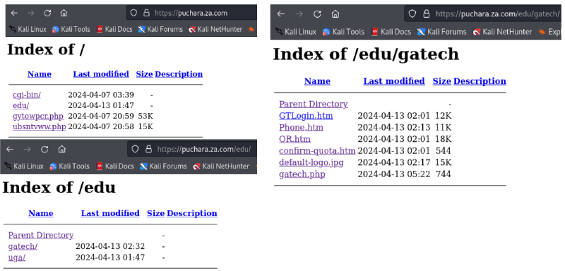 The contents of /edu/gatech aren’t all that more interesting; they appeared to have a host of various derivative payloads/trickery designed for scraping up submitted details from students and hosted the pages/templates for what students would encounter if they were to fall for the scheme: